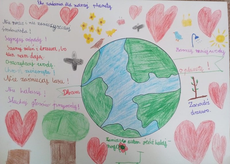22 kwietnia obchodzony jest Dzień Ziemi. Motywem przewodnim w tym roku, a zarazem hasłem obchodów, jest "Działanie na rzecz ochrony klimatu". Ze względu na zaistniałą sytuację nie mogliśmy udać się na sprzątanie świata. Uczniowie klasy III przygotowali eko zasady i zrobili dowolną rzecz z odpadów. Wszystkie prace są wyjątkowe.