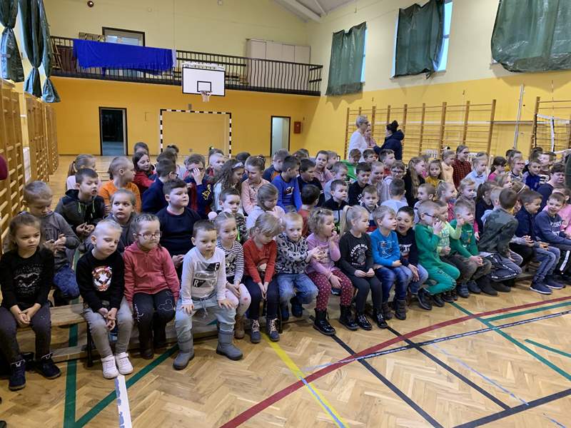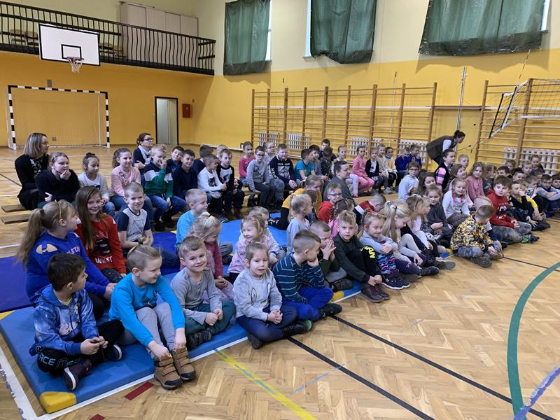 W pierwszych dniach tuż po feriach 28 stycznia gościliśmy w naszej szkole aktorów Teatru Kurtyna z Krakowa, którzy dla najmłodszych uczniów zaprezentowali przestawienie "Miś Niegrzeczniś". Jak sam tytuł bajki już zdradza, mówiła ona o niegrzecznym misiu, który często popadał w tarapaty. Uczniowie biorąc udział w tej bajkowej lekcji, śpiewając i odpowiadając na pytania zadawane przez artystów poznali zasady kulturalnego zachowywania się, utrzymania prawidłowych relacji z rówieśnikami i szacunku dla słabszych. Aktorzy zachęcali również do czytania książek. Ta zaskakująca w akcje bajka sprawiła, że sala gimnastyczna wypełniła się śmiechem, muzyką i brawami. Bajka została przedstawiona w ramach Programu Profilaktycznego naszej szkoły.