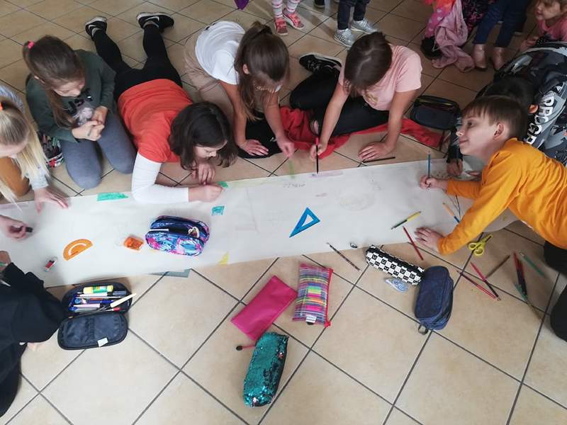 Uczniowie w klasie II w ramach tematu "Lekcja programowania" mieli okazję zabawić się kolorowymi kubeczkami. Zabawy kubkami na macie służą do zorganizowania różnego rodzaju aktywności: sudoku, memory, a także do tworzenia kodów z warunkami, algorytmów. Dzięki zabawom z kodowania rozwijamy kompetencje matematyczne, kreatywne i logiczne myślenie, poszerzamy wyobraźnię, ćwiczymy samodzielność uczniów oraz współpracę w grupie. Zajęcia te okazały się bardzo atrakcyjne dla dzieci, każdy bardzo angażował się w prawidłowe wykonanie zadań i śledził w skupieniu wszelki najmniejszy ruch swojego kolegi. Można powiedzieć zatem, że pierwsze koty za płoty, ale jak to bywa na początku to jest łatwo i wesoło, kolejne zajęcia nie będą już takie proste. Poziom trudności z każdymi zajęciami będzie już tylko rosnąć w górę.